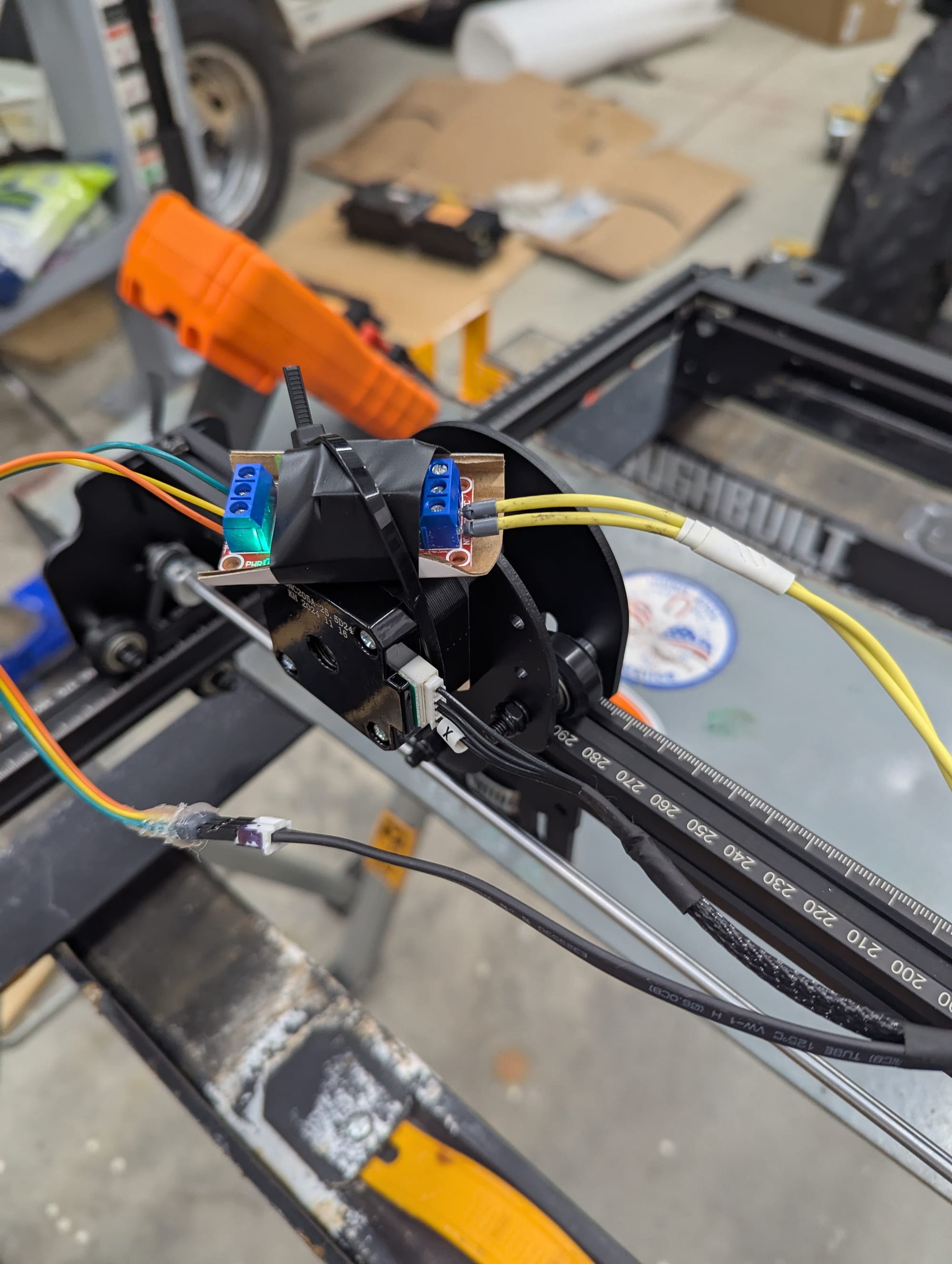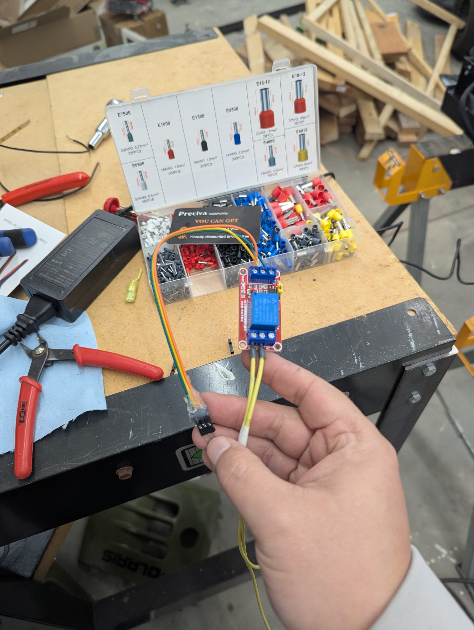 Wire up the relay that will be used to control the plasma cutter. The outside pin off the laser cutter is 12v, middle is ground, and the other outside is the pwm voltage. Wire them into the relay. From the relay out to the plasma cutter just use some wire and terminals and link it to the plasma cutter.