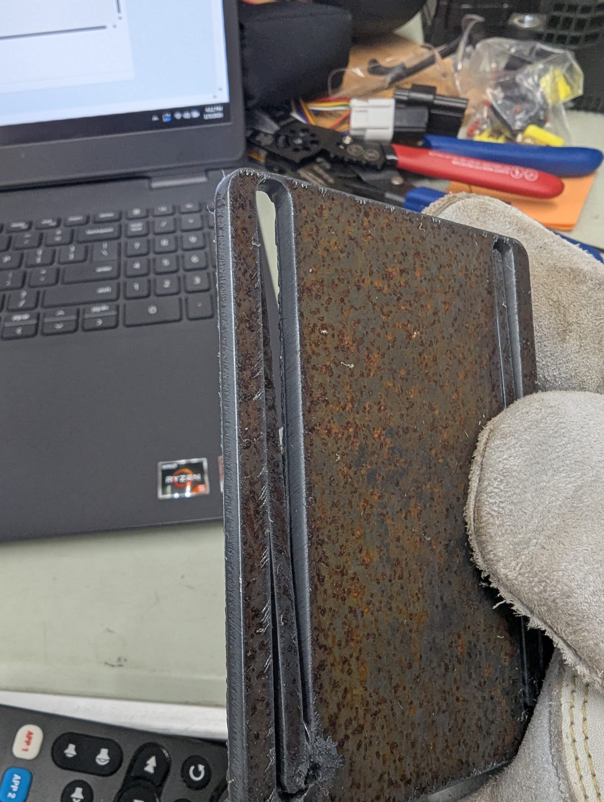 The cut out of the circle is 1/2 plate, and with a hit of hammer the slug fell out. The C , and bracket are 1/8"