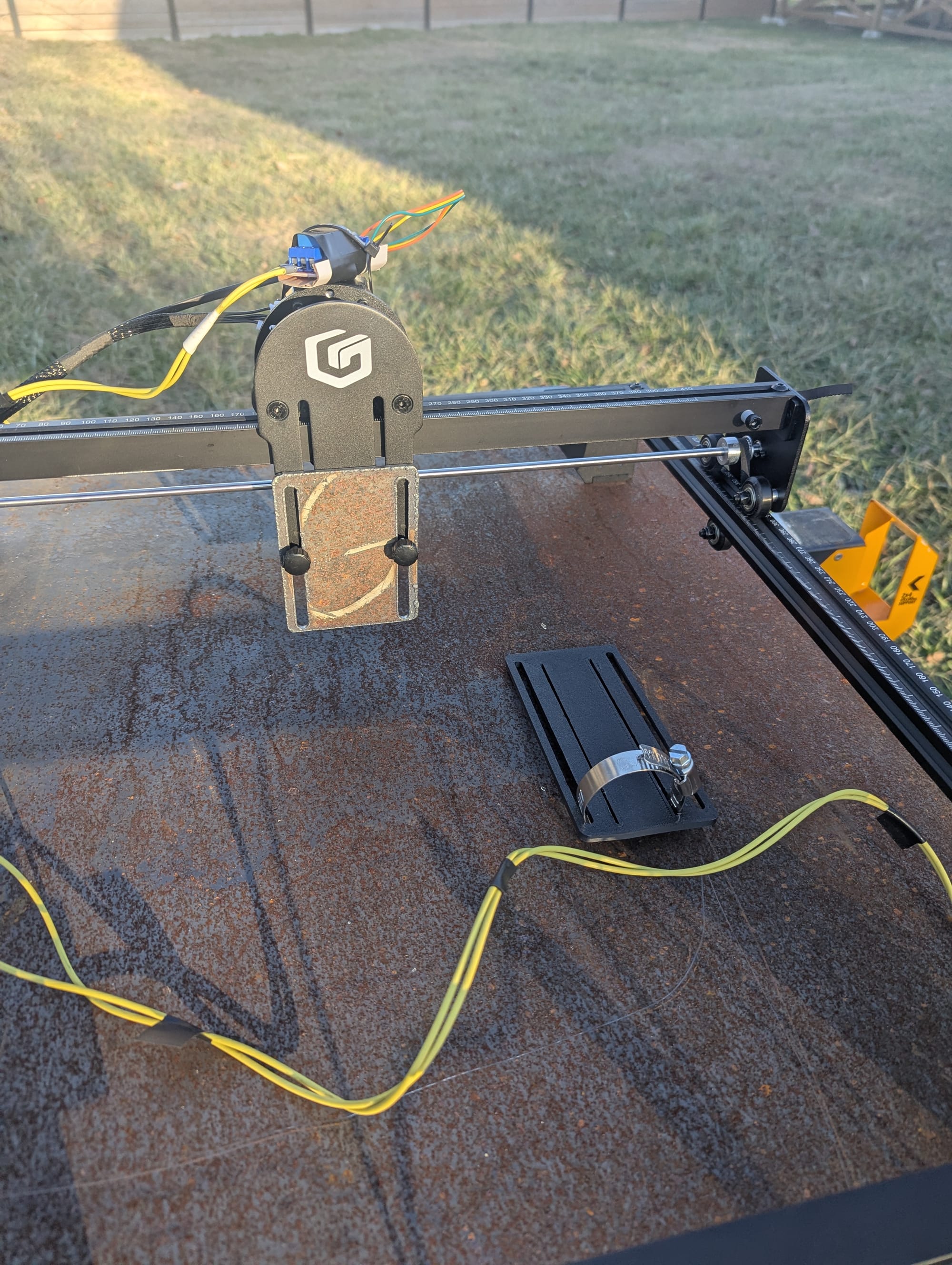Next up we need a bracket to mount the plasma cutter to. You can use this 3d file if you want, then after you get the machine running cut it out of metal. From there just use a hose clamp to fix the cutting torch